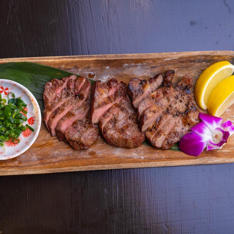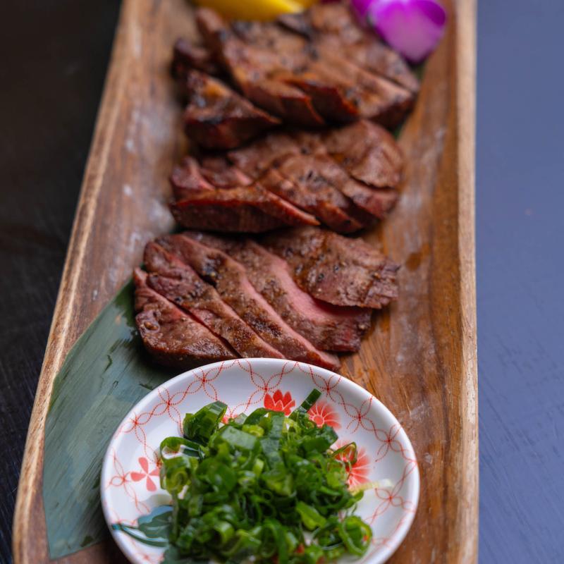 Thick sliced beef tongue served w/ green onion sauce (salted and marinated with sesame oil).