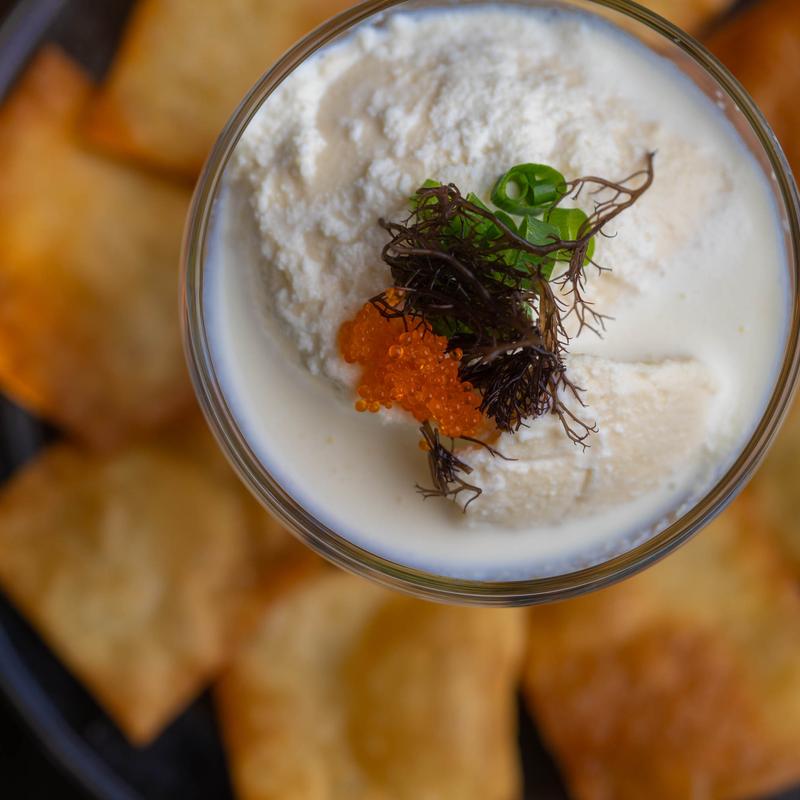 Aloha Tofu and rich cream blended into a smooth yuzu-flavored mousse. Served with white soy sauce.