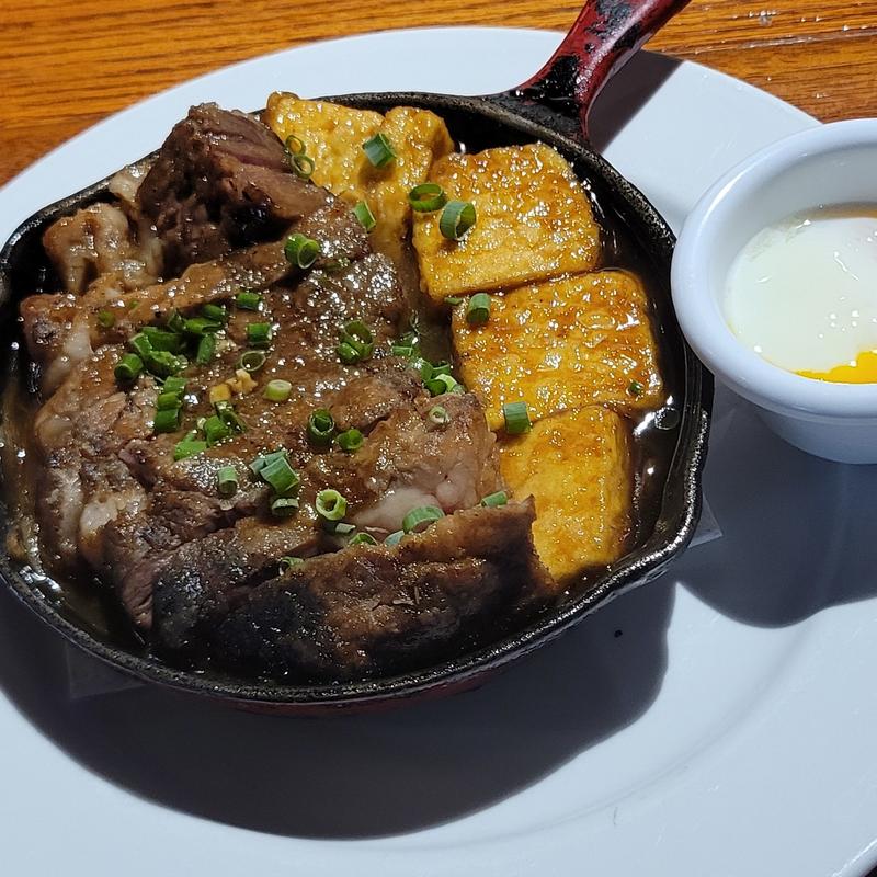 1/2LB of Angus Beef Rib Eye, Fried Aloha Tofu, Island Egg, Sukiyaki Sauce